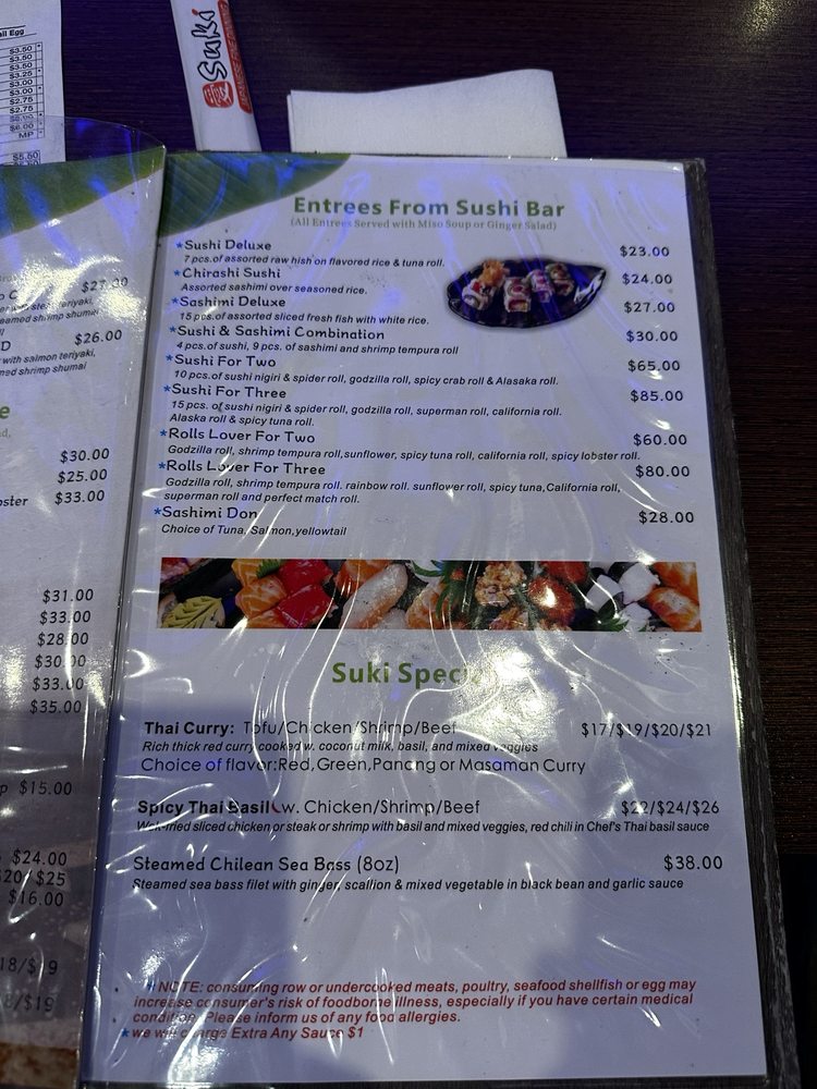 Welcome to Suki Sushi, a delightful Japanese restaurant nestled in Brentwood, TN. Known for its fresh sushi and delectable hibachi dinners, Suki Sushi offers an array of dishes that cater to all tastes, including numerous vegetarian options. Patrons can indulge in a lunch special featuring a choice of two or three sushi rolls, or savor the classic hibachi dinner combo, served with miso soup or ginger salad.